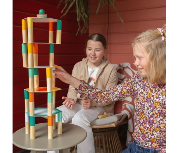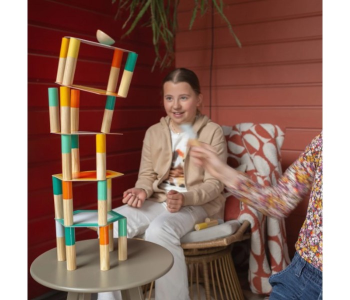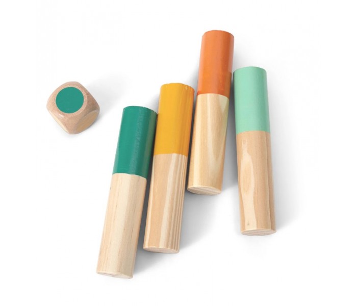 Não queira derrubar a torre gigante. Os jogadores alternam turnos, lançando o dado colorido, e retiram um pauzinho de madeira da cor que o dado indicar. A escolha do pauzinho é fundamental, pois pode ser aquele que fará a torre cair.