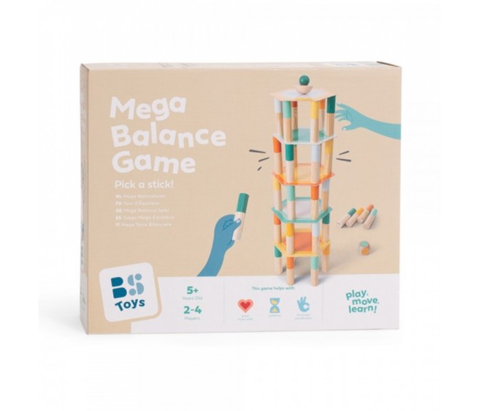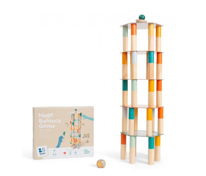 Feito em madeira e cartão, o jogo contém 30 paus de madeira com as dimensões de 12×2,5 cm, 5 cartas (17×20 cm), 1 dado, 1 peça de equilíbrio e 1 semibola, oferecendo uma experiência divertida e desafiante para todos.