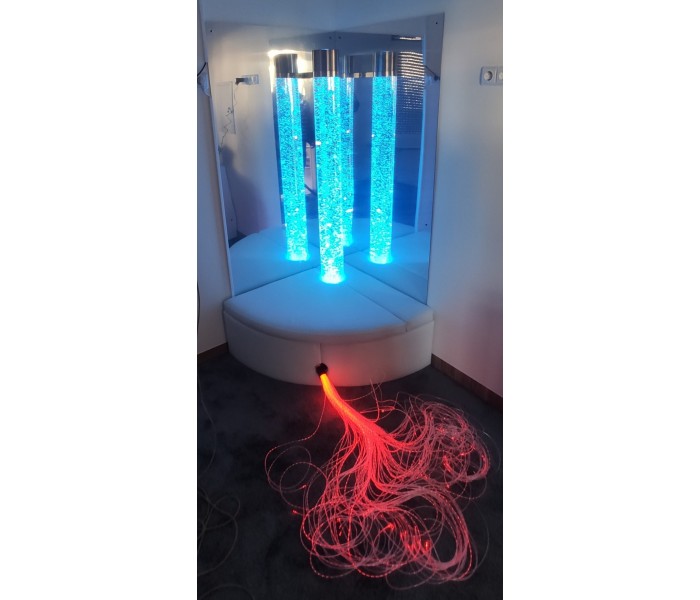 O Kit Sensorial de Fibras Luminosas é um recurso especializado concebido para contextos terapêuticos e educativos que privilegiam a estimulação sensorial. Este equipamento combina tecnologia LED com fibras ópticas de alta qualidade, proporcionando uma experiência visual dinâmica e envolvente. A fonte de luz de 16W garante uma iluminação segura e eficiente, com transições suaves de cor controladas por comando remoto.