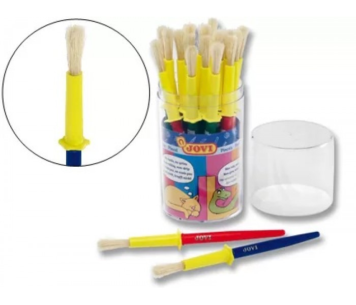 Pincéis escolares médios de pelo natural, com pega em plástico.