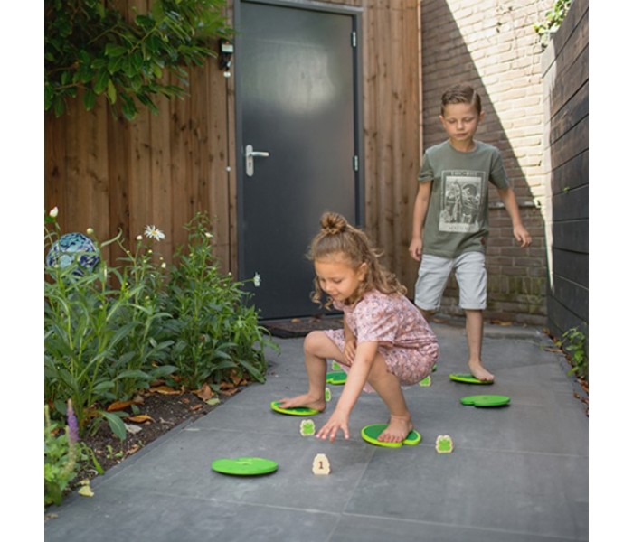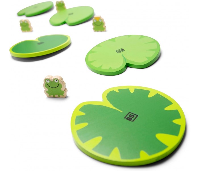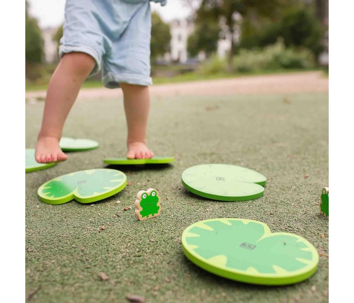 Desenvolve as competências motoras globais, estimula os movimentos amplos e o controlo corporal durante a interação com o jogo, ajuda a melhorar a coordenação entre movimentos corporais, exigindo precisão para apanhar os sapos sem cair, incentiva o equilíbrio, uma vez que as crianças devem manter a estabilidade ao mover-se sobre os nenúfares balançantes.