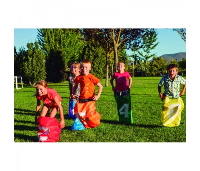 Este conjunto de 6 sacos de corrida, cada um em uma cor diferente e numerados de 1 a 6, é perfeito para atividades sociais e para desenvolver a coordenação de movimentos e equilíbrio nas crianças.