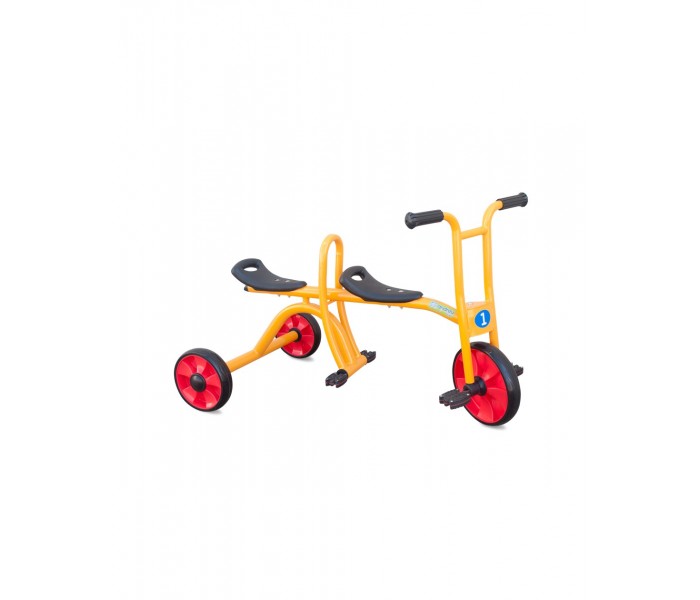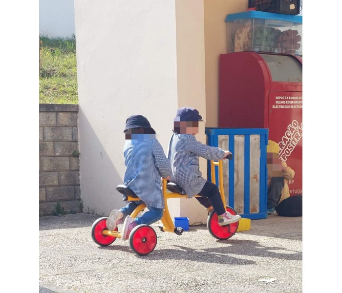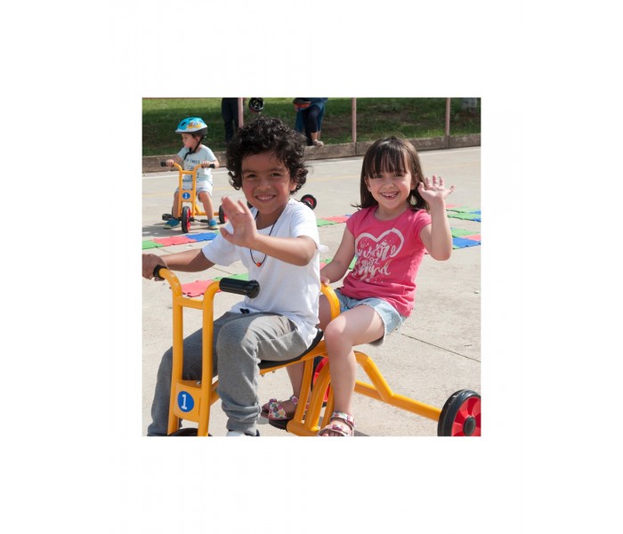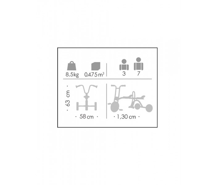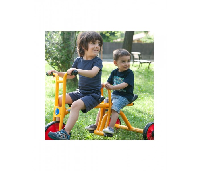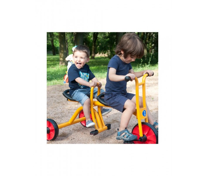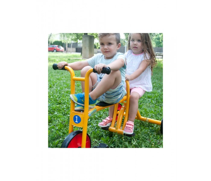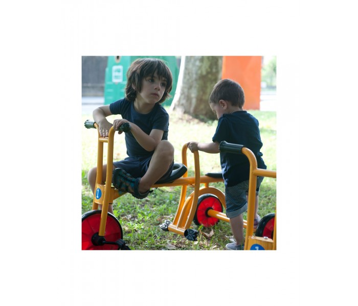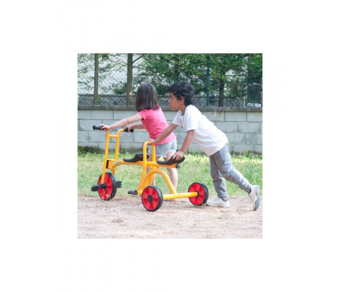 Este táxi robusto é ideal para muitas horas de diversão. O apoio central ajuda a criar confiança nas crianças. Materiais resistentes às intempéries. Banco/selim com 2 posições.