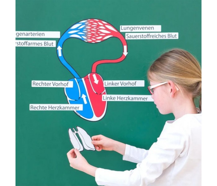 Construído com materiais de alta qualidade e ímãs poderosos, este modelo reproduz fielmente as principais estruturas do aparelho circulatório, permitindo o estudo da circulação sanguínea de forma prática e envolvente. O fluxo sanguíneo pode ser visualizado de forma dinâmica, demonstrando a forma como o coração bombeia o sangue através do corpo e como ele retorna ao coração após fornecer oxigénio e nutrientes às células.
