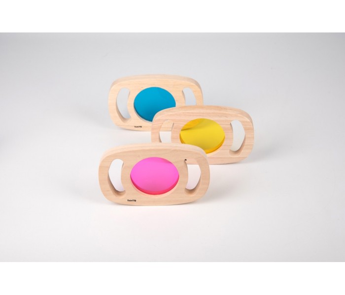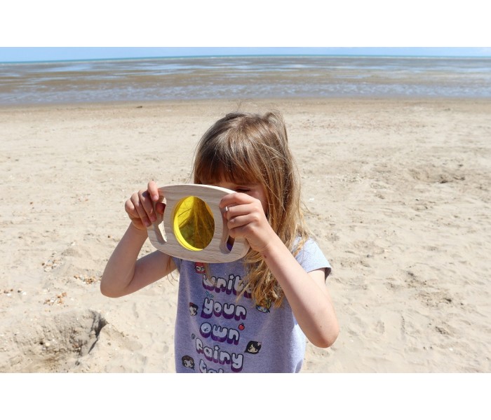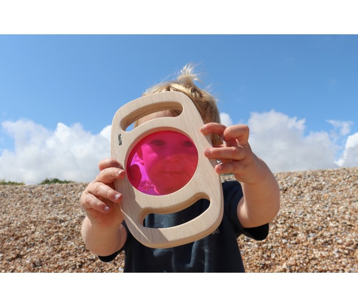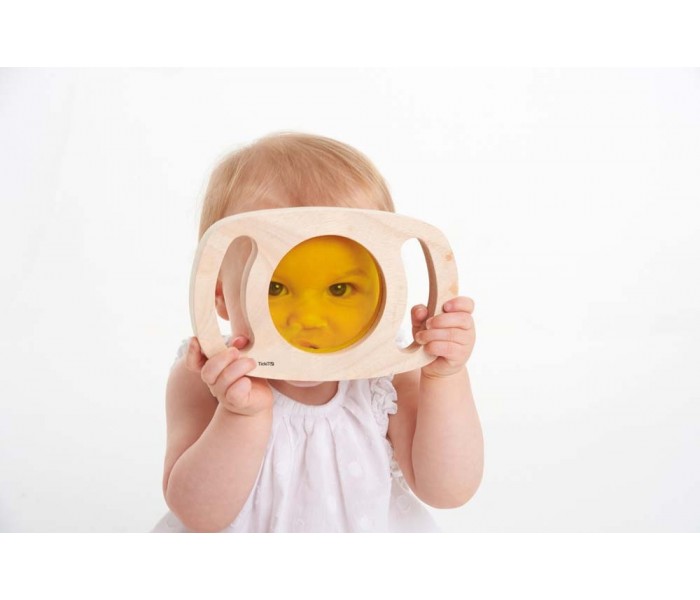 Conjunto de 3 lentes coloridas (amarela, azul e rosa) para as crianças observarem o que as rodeiam com uma perspetiva diferente.