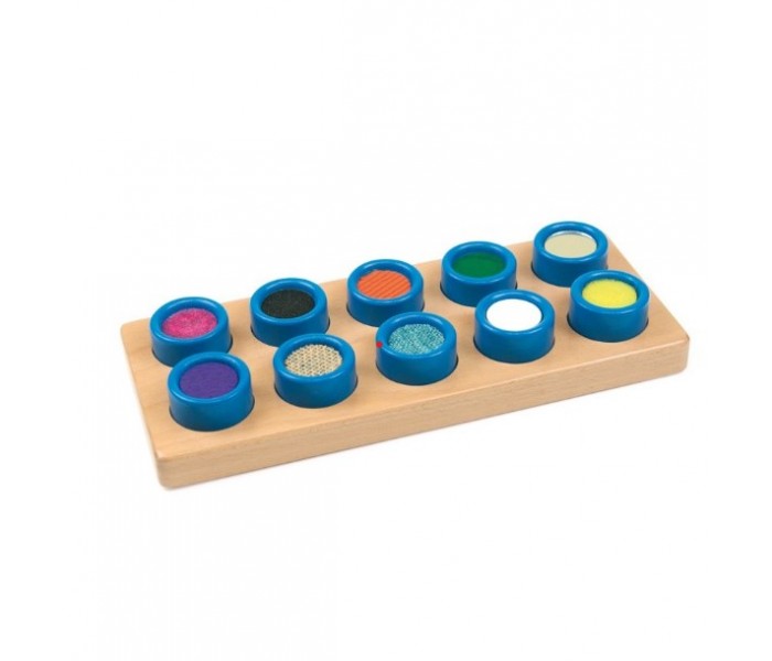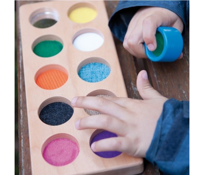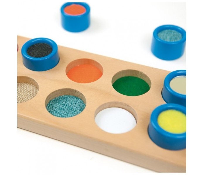 Este jogo sensorial é ideal para aprender a associar as 10 texturas das peças ao respetivo tabuleiro.