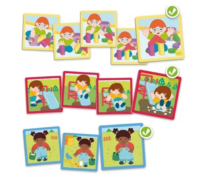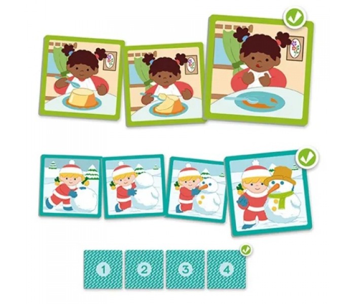 Um jogo de pequenas histórias, em sequência, que visam desenvolver a orientação temporal e a perceção cronológica, para criar pequenas histórias e conhecer as noções temporais.