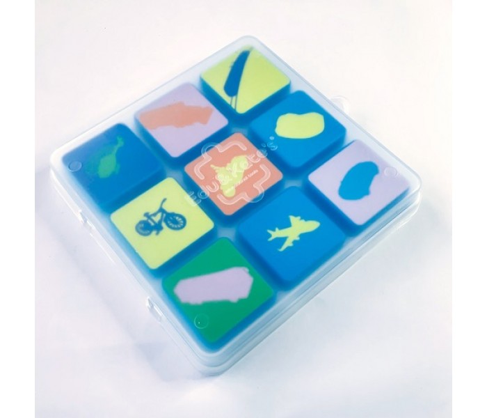 - 1 tabuleiro com 9 peças e respetiva tampa.