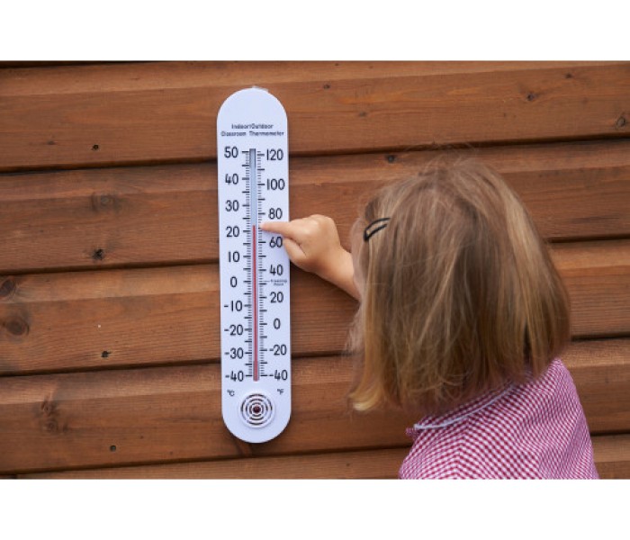 Este termômetro de grandes dimensões apresenta um tubo de lupa de vidro grande e preciso de 30 cm, preenchido com querosene. O alcance é de -30° a 50° Celsius e -20° a 120° Fahrenheit.