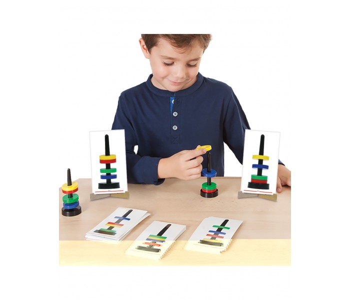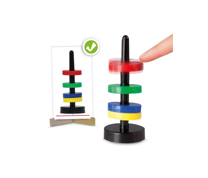 Jogo de observação e manipulação que permite que as crianças descubram as propriedades do magnetismo reproduzindo modelos de cartões com discos magnéticos.