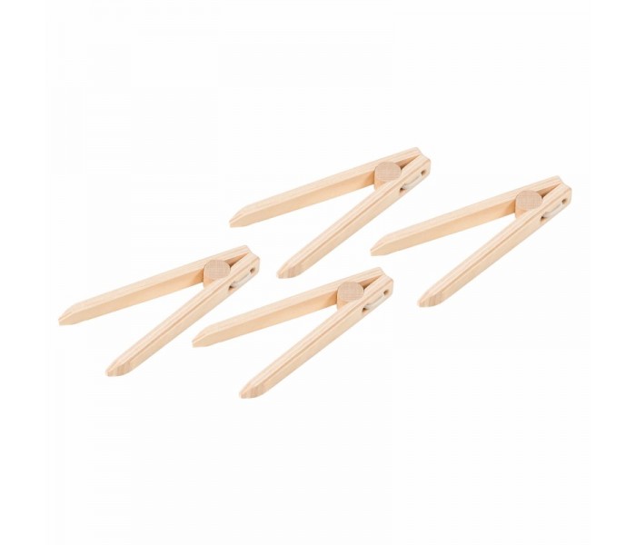 Desenvolva habilidades motoras finas com estas pinças de madeira. Use-as em jogos com missangas, anéis, peças de quebra-cabeça, etc.