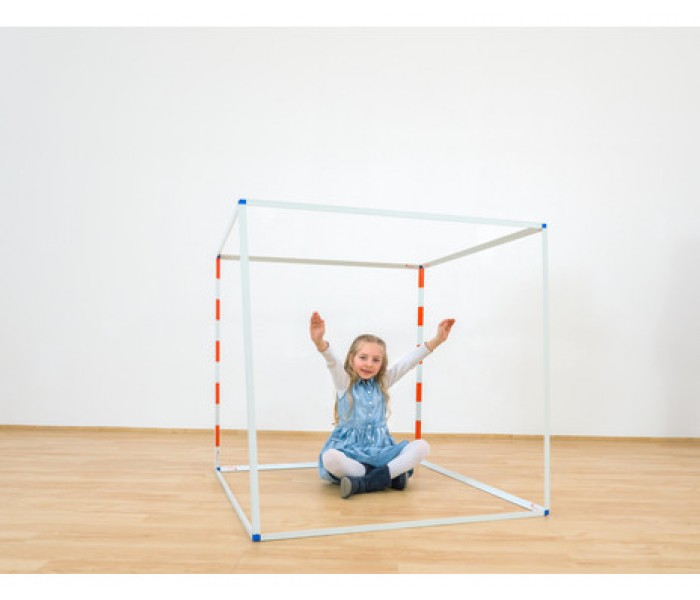 Este modelo pode ser montado rapidamente usando 12 hastes plásticas triangulares e 8 conexões de canto. Três barras são fornecidas com uma graduação em decímetros colorida.