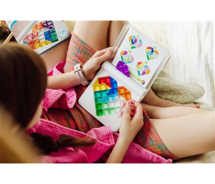 Este quebra-cabeças portátil vem com um tabuleiro de jogo de dupla face e 120 desafios... para um relacionamento prolongado!