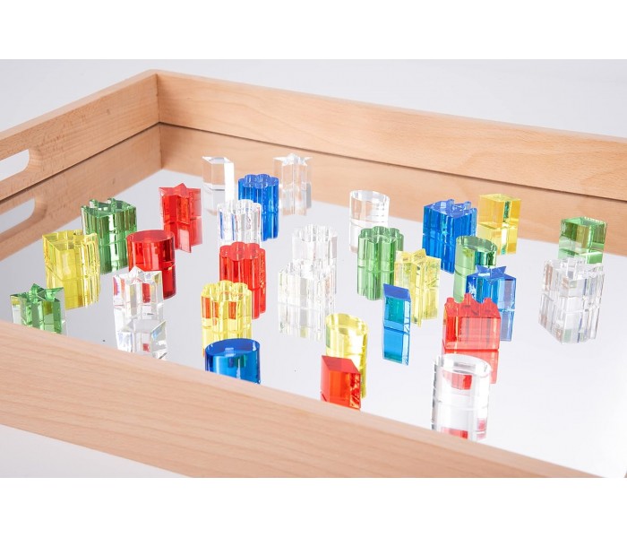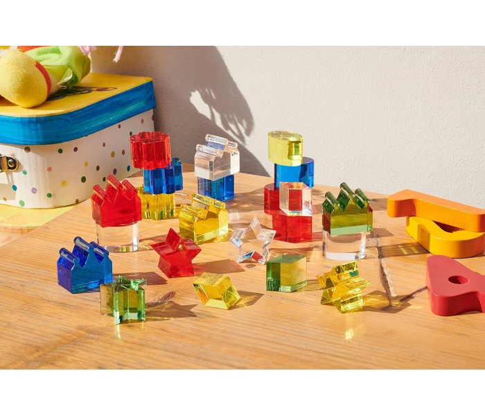 O conjunto de Tesouros Coloridos Translúcidos contém uma seleção de belas formas de acrílico transparente e colorido que vão despertar a curiosidade dos mais novos. Com bordas polidas e seguras, as superfícies são lisas e táteis, ideais para os pequenos exploradores. Estes tesouros atraentes podem ser usados com bandejas de classificação para que as crianças possam fingir que descobriram pedras preciosas reais!