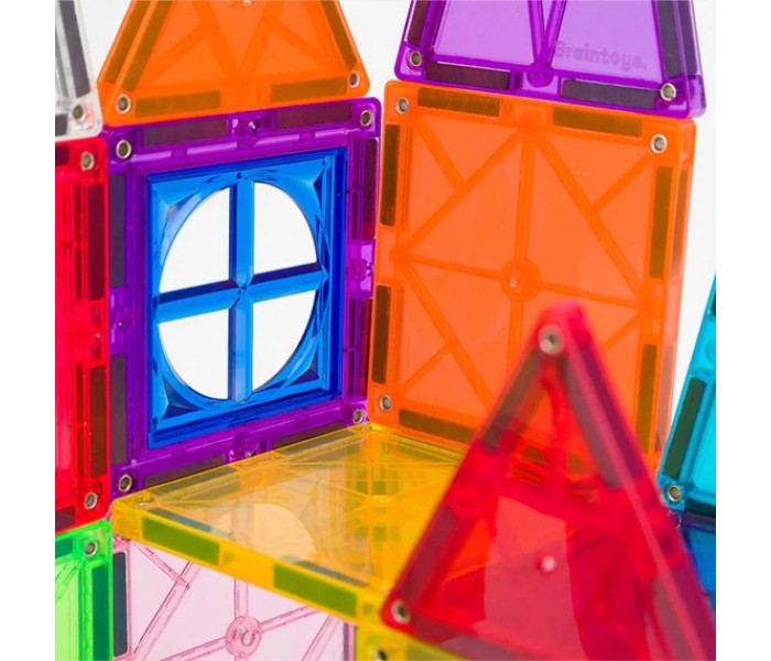 Brincar sozinho ou em grupo com as peças magnéticas estimula a aprendizam STEAM e ajuda a criança a desenvolver as habilidades motoras.
