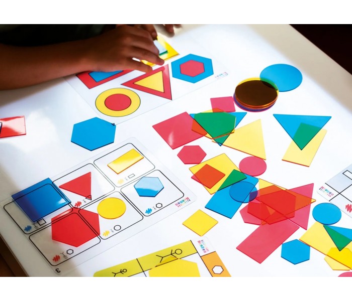 Por serem translucidos, podem ser usados em mesas de luz e tornar as atividades ainda mais interessantes.