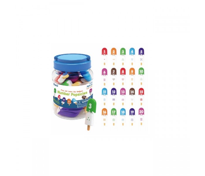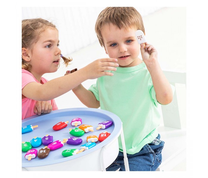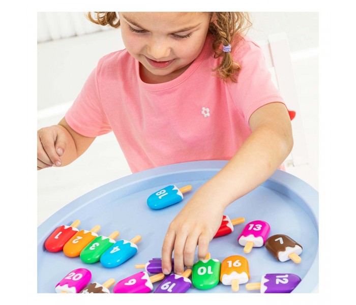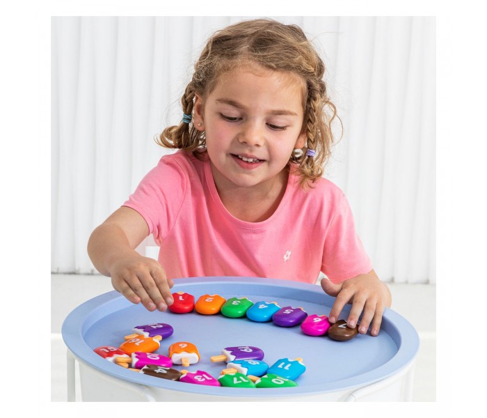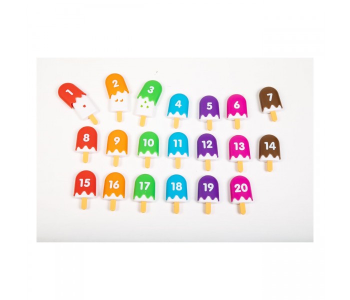 Cada mini gelado consiste em duas peças interligadas, incentivando a aprendizagem matemática ativa através da brincadeira.