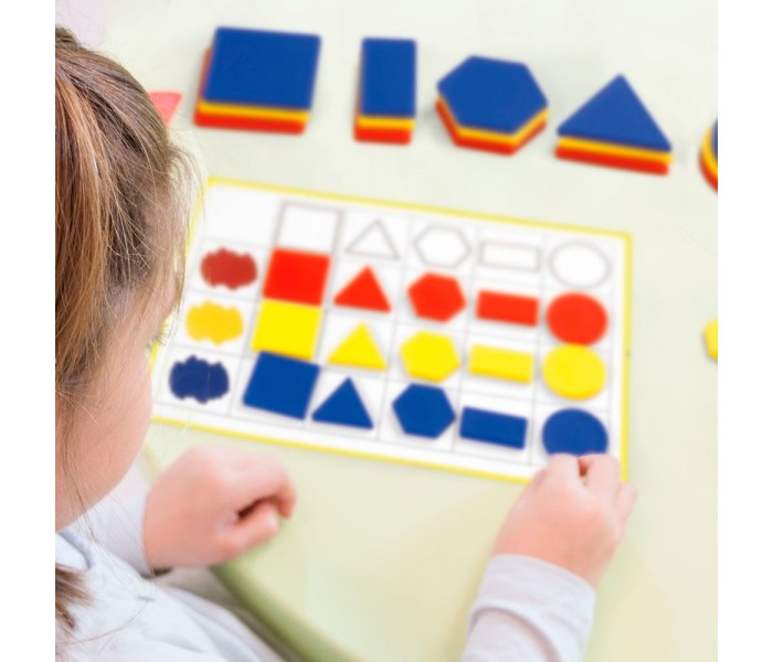 Este é o recurso ideal para trabalhar e lidar com diferentes conceitos lógicos e matemáticos. O jogo vem com um pacote de fichas com 16 atividades por ordem crescente de dificuldade, além de um guia didático explicando como usar os blocos em diferentes áreas: