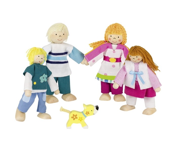 Família de bonecos de madeira flexíveis. Podem sentar-se  ou ficar de pé, tornando as peças mais animadas e realistas.