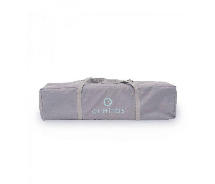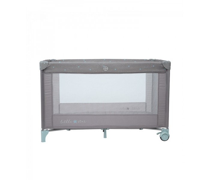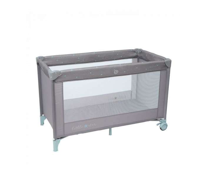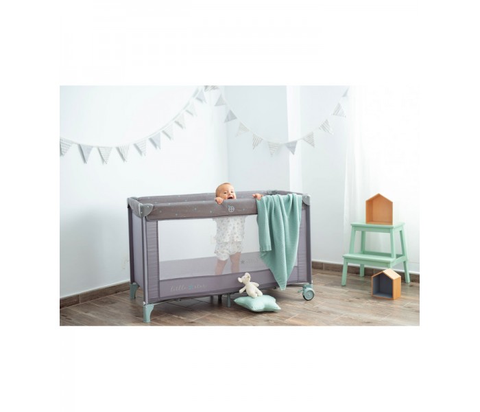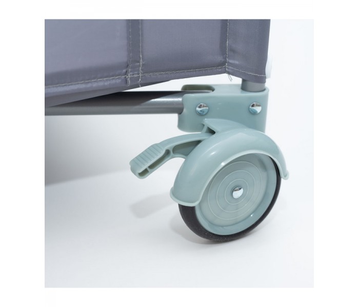 Berço/cama de viagem com rodas para fácil movimento e freios de segurança.