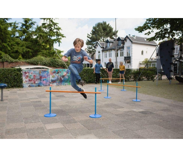 Os obstáculos são ajustáveis em altura para que possa ir um pouco mais alto a cada rodada.