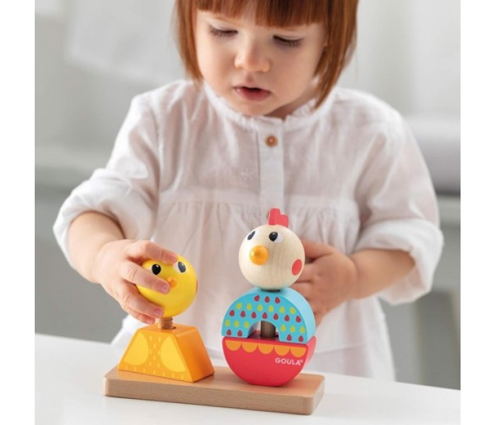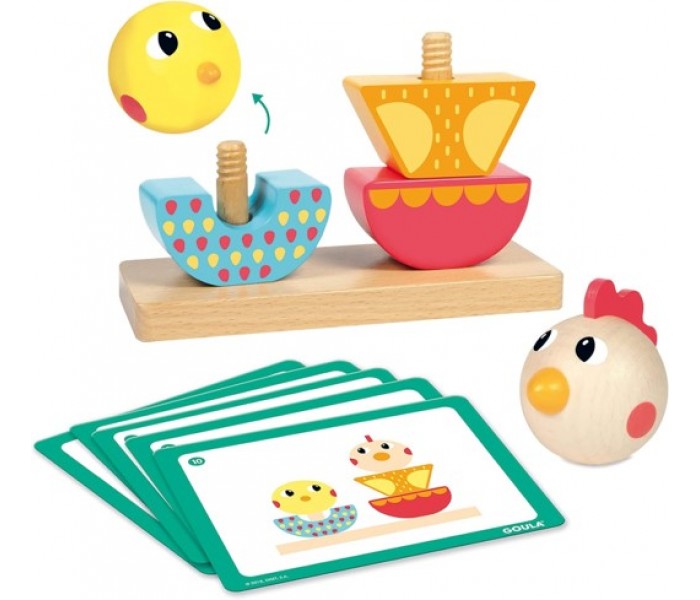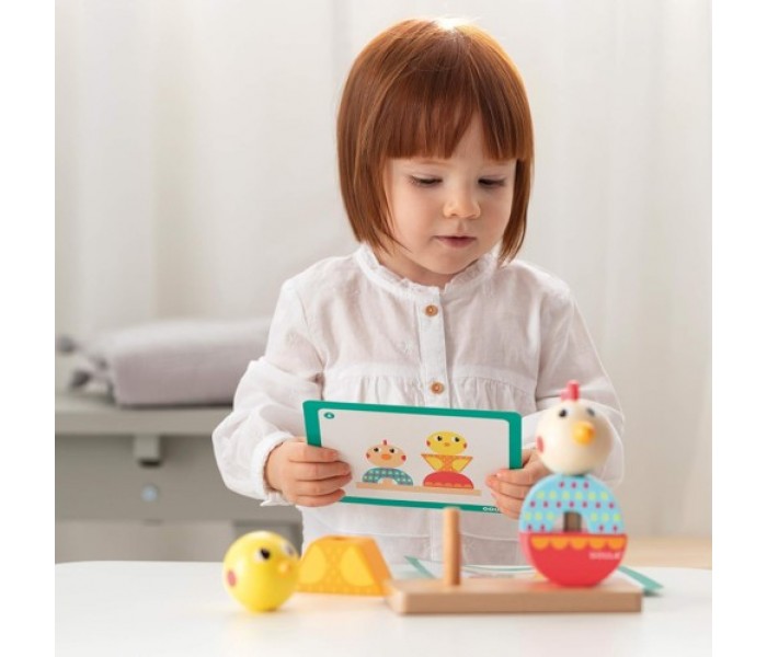 Neste jogo em madeira, tira um cartão de desafio e constrói a combinação correta.