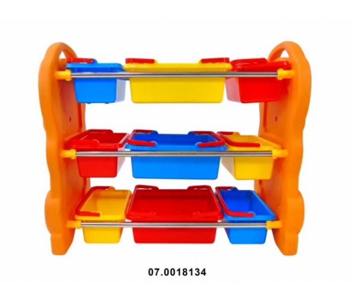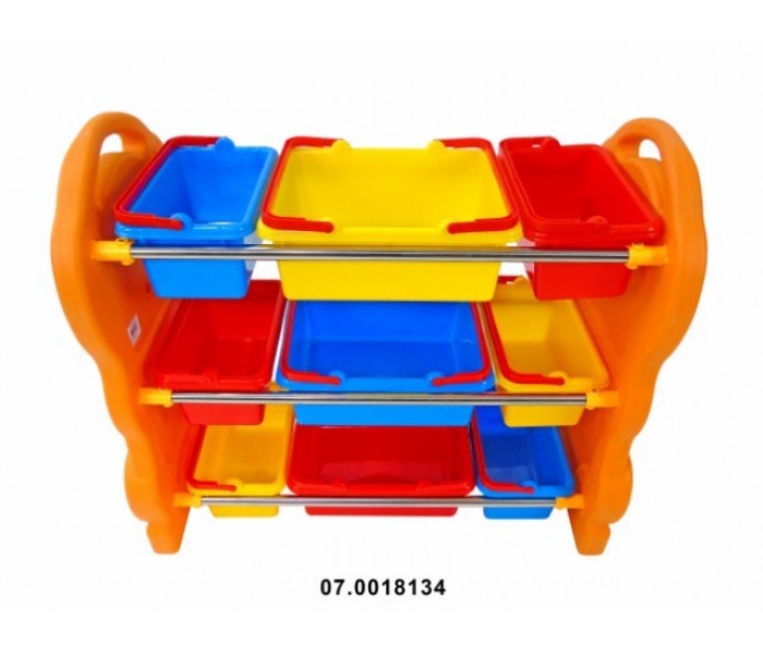 Fabricada em plástico resistente, com 9 caixas para arrumação, esta estante ajudará na organização e arrumação dos espaços dos mais pquenos.