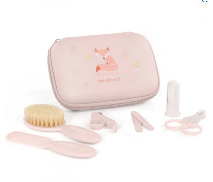 Este conjunto inclui os utensílios essenciais para garantir a higiene do dia-a-dia do bebé, tais como um pente, uma escova macia, uma tesoura, um cortador de unhas para bebês , uma escova de dentes de silicone para as gengivas e limas para cuidar das unhas.