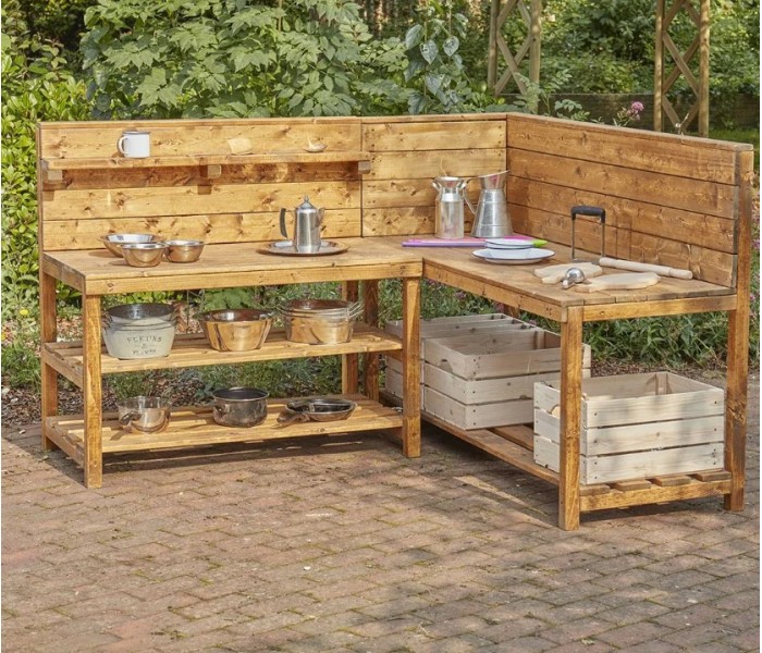 Esta unidade compacta de canto é ideal como cozinha de lama, área criativa, banco de trabalho para construção ou qualquer outra atividade simbólica que desperte o interesse dos mais pequenos.