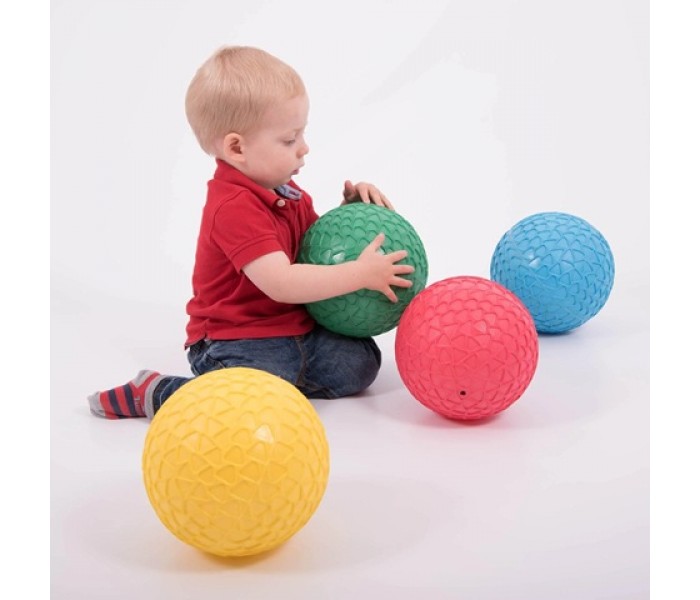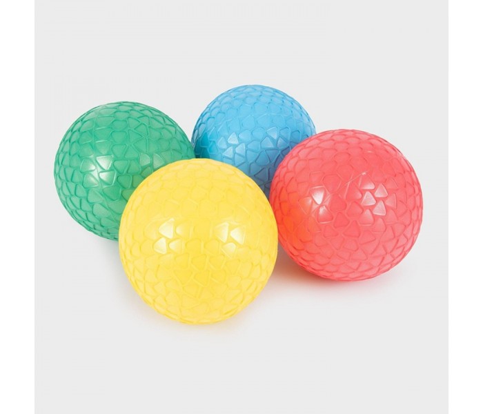 Inclui bolas insufláveis de cores vivas, com uma superfície texturizada em formato de favo de mel, que facilita a pega pelas mãos pequenas e torna os jogos de atirar e apanhar muito mais acessíveis.