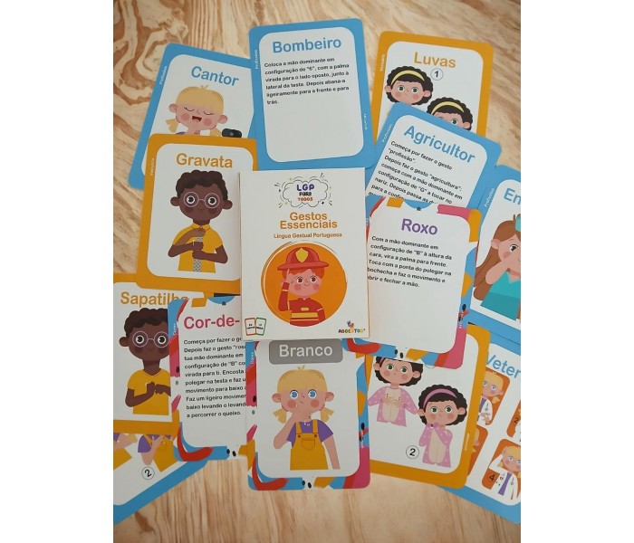 São 50 cartas educativas que reúnem os gestos mais usados no quotidiano.