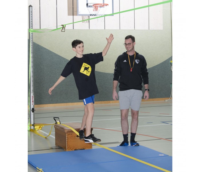 Fornecido em conjunto com uma fita auxiliar, que pode ser esticada por cima da fita principal, para que os mais pequenos também se possam apoiar e deslocar, garantindo uma rápida aprendizagem para os iniciantes.