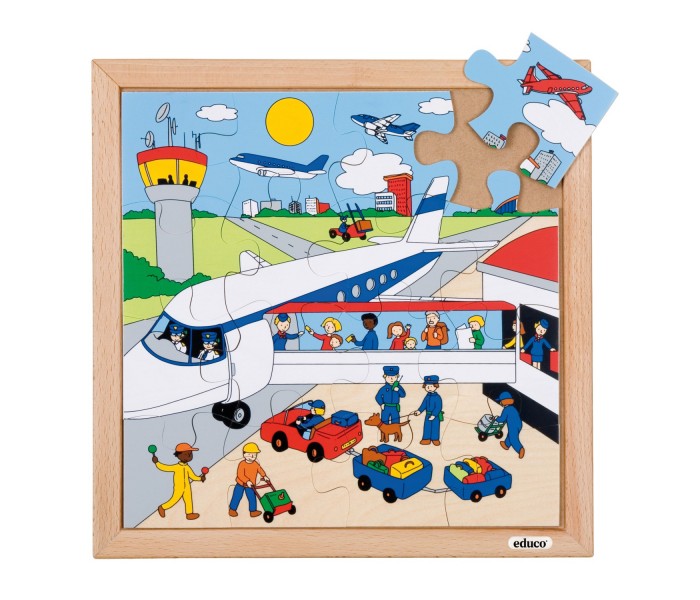 Puzzle de madeira com 16 peças.