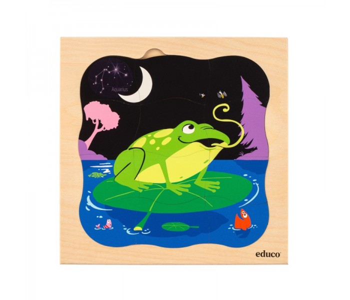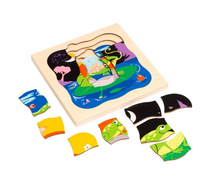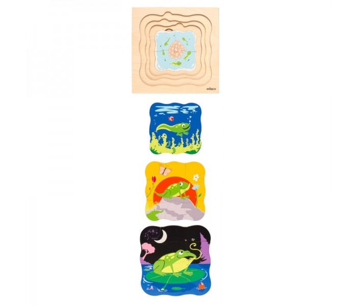 Este puzzle de 4 camadas, com 31 peças, mostra o crescimento da rã.