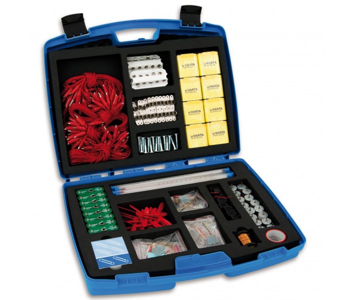 O Kit Montagem Circuitos Simples - 540 Peças, é uma ferramenta educativa projetada para alunos a partir dos 6 anos de idade explorarem de forma independente os princípios básicos da eletricidade. Contém materiais que permite ter 16 grupos de alunos a trabalhar simultaneamente.