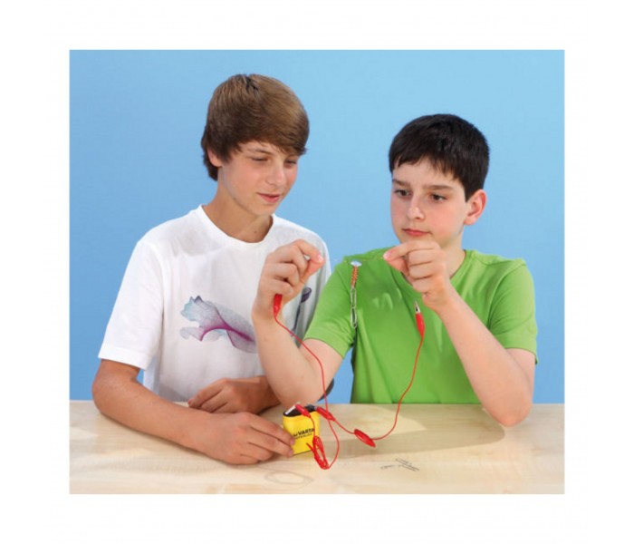 Este conjunto escolar oferece aos pequenos cientistas a oportunidade de descobrir como uma lâmpada acende quando conectada a um circuito simples ou, ainda, fazer tocar a campainha.