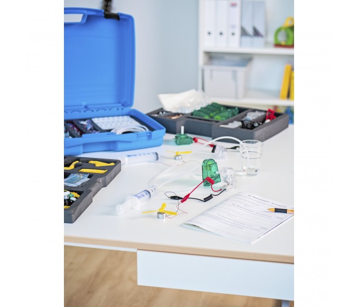 Com materiais de boa qualidade para construir circuitos diversos, este kit permite que os alunos experimentem e explorem o mundo das energias alternativas.