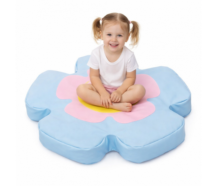 Puff em forma de flor gigante, ideal para salas de leitura onde as crianças podem estar confortáveis a ler ou a contar histórias aos seus colegas, estimulando a imaginação das crianças.