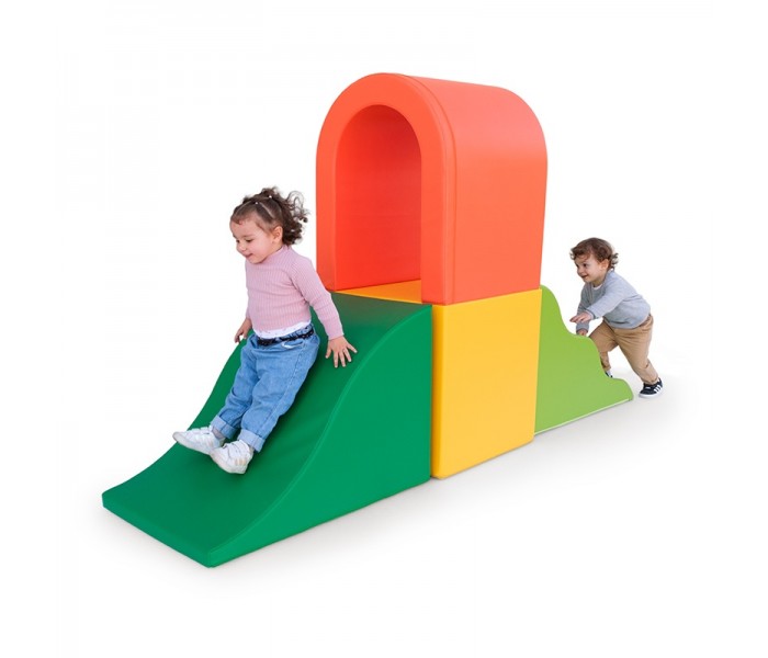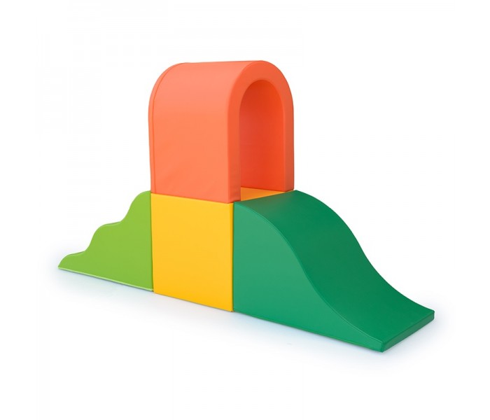 Percurso composto por 4 peças (escada, quadrado, ondas e túnel) em tela lavável e impermeável e interior em espuma. Com fundo antiderrapante.