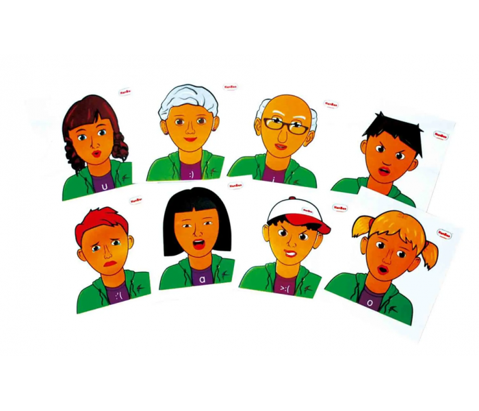 Inclui, ainda, 8 cartas modelo para jogar com 3 gestos básicos, bem como a posição oral para pronunciar vogais.