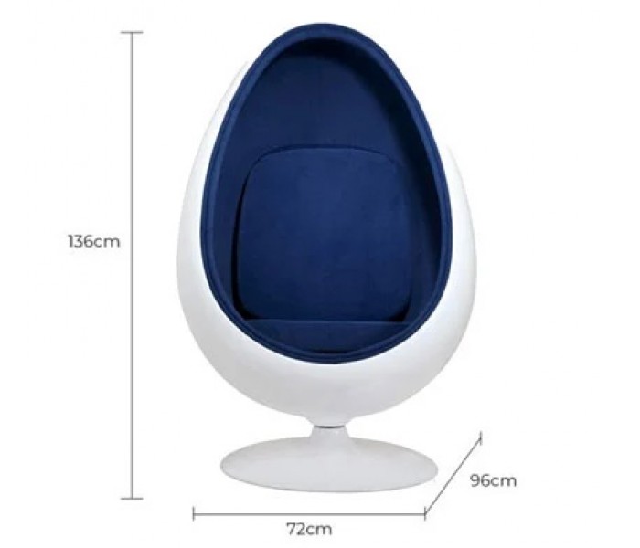 Dimensões: altura 136 cm; 72cm de diâmetro; 96 cm no ponto mais largo do ovo.