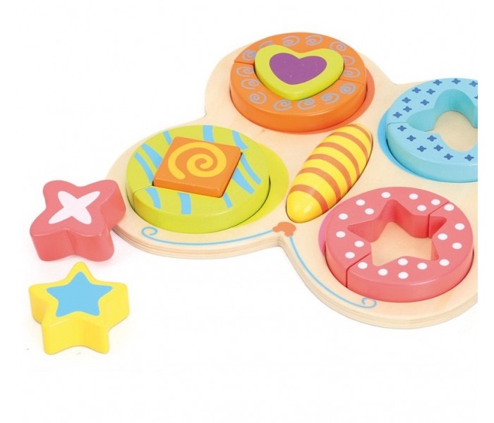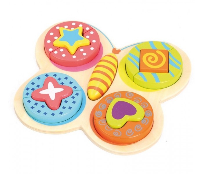 Puzzle colorido borboleta com diferentes 14 peças para inserir, com base de 1 cm de espessura.