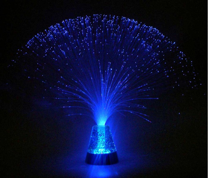 Utilizando tecnologia de fibra óptica, esta lâmpada muda suavemente de cor.