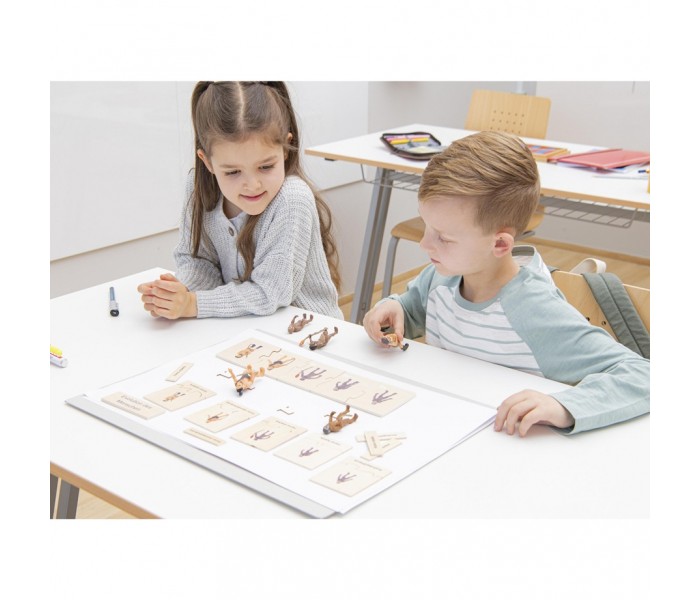 Cada conjunto contém figuras de plástico detalhadas e laváveis, bem como puzzles robustos de madeira que proporcionam uma experiência de aprendizagem interativa.