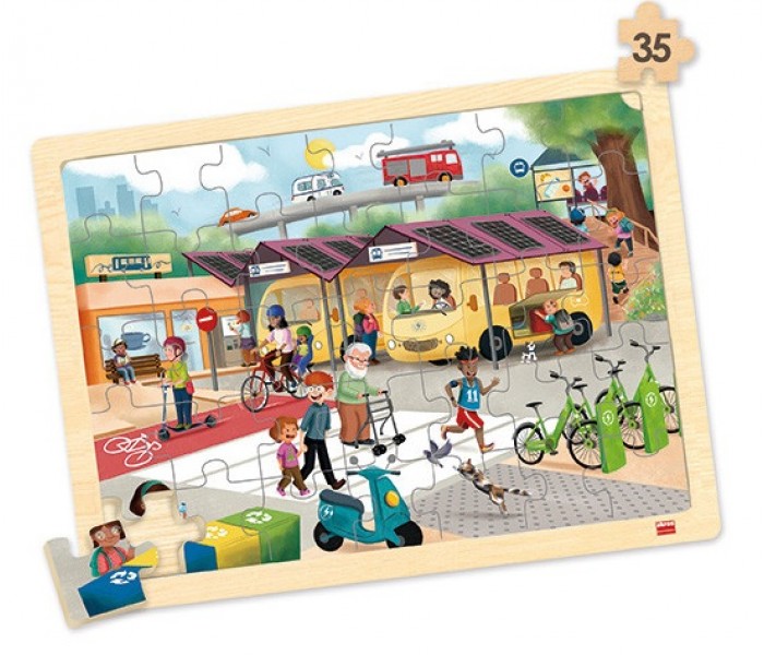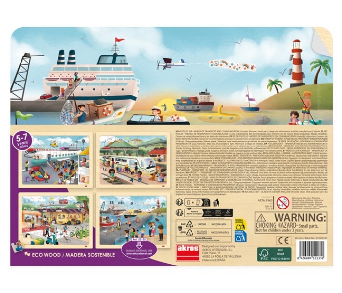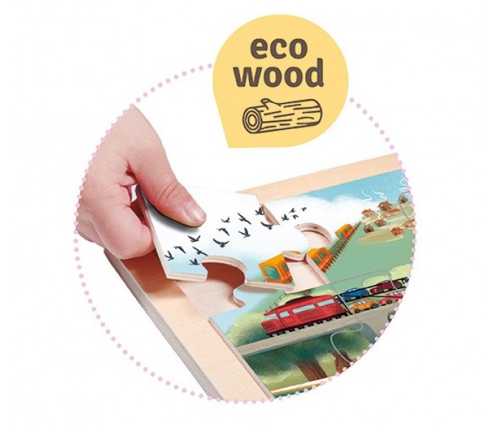 Conjunto de 4 puzzles de madeira ECO, cada um com 35 peças.