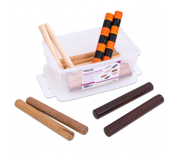 Há também um par de clavas shakers no conjunto, que podem ser usados para som rítmico de chocalho.