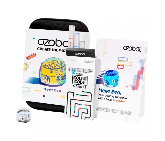O Ozobot Evo pode ser minúsculo, mas combina tudo o que precisa para começar com robótica e programação. Muitos sensores de infravermelhos, um altifalante, luzes LED que reproduzem o código de cor, e também a ligação Bluetooth tornam o Ozobot Evo único. O funcionamento interno do robô educativo é visível graças à cobertura transparente e pode ser observado durante a execução dos comandos. No início e no início do mundo da robótica, as crianças podem desenhar linhas no papel com as canetas de feltro. O pequeno robô educativo reconhece-os e segue-os. Com cores diferentes, são criados os primeiros códigos de cor, que significam sempre uma manobra diferente para o Ozobot.