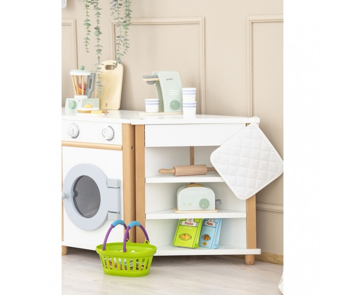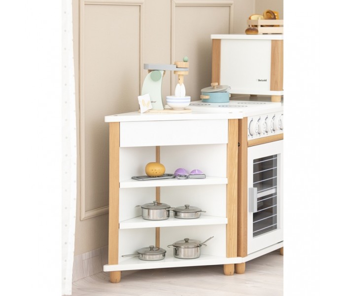 A criatividade não tem limites. E a vontade de brincar ao faz de conta também não. Com este bloco de prateleiras de canto em miniatura, as crianças podem imitar os adultos com o máximo realismo possível.