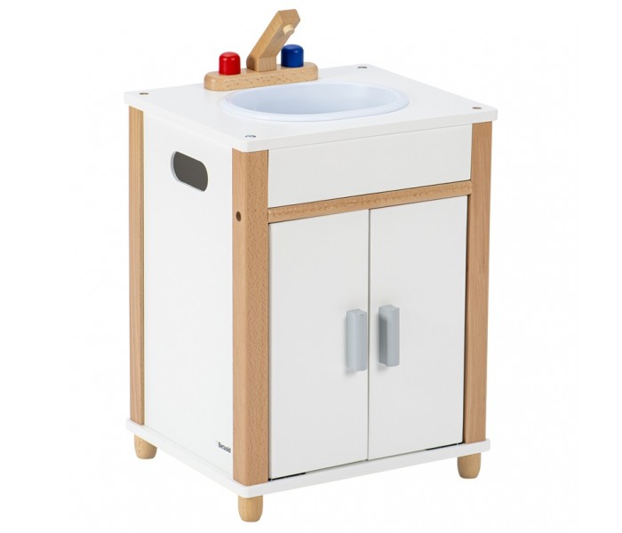 Com esta Cozinha Infantil Completa de madeira cuidadosamente desenhada, os mais pequenos podem cozinhar, cozer, lavar e lavar a loiça como os adultos.