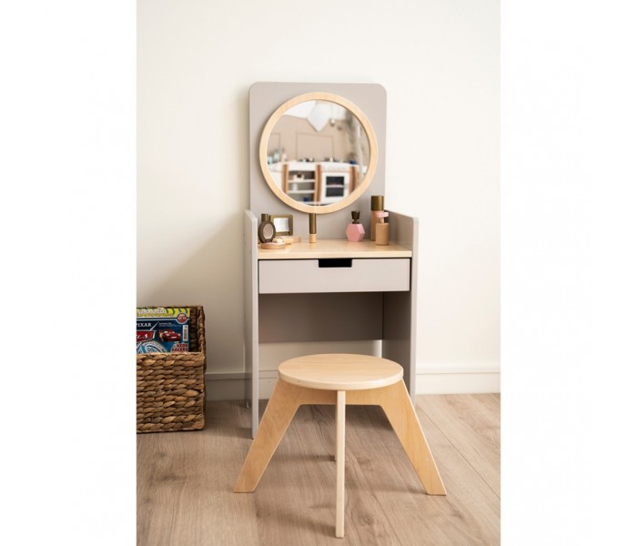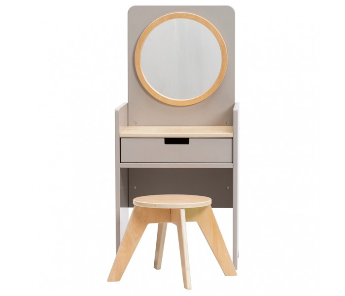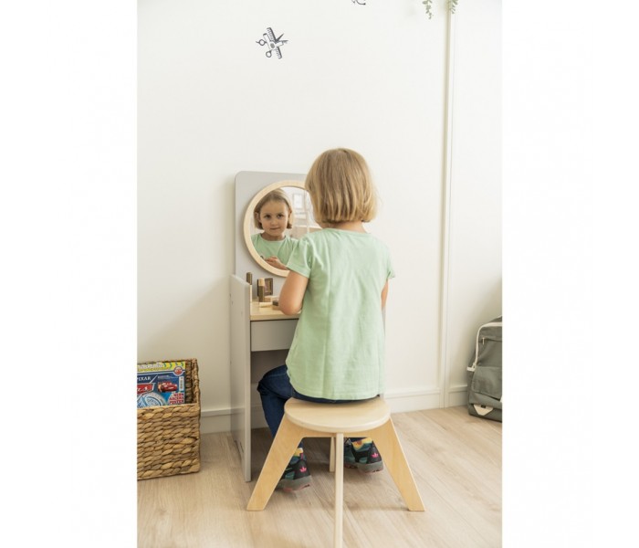 Este Toucador com Espelho e Banco, de design neutro, faz do canto das bonecas um ponto de encontro popular no seu jardim de infância ou escola.